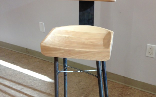 Two bar stools made of Maple, Cherry, Wanlut, Steel and a chainsaw bar, created during Emma International Collaboration 2016 with Todd Hiebert (Saskatchewan), Bill Dorman (Australia) and Neville Parker (New Zeland).