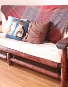 This green wood sofa frame was refinished, stained red oak, the spindles carved into polar bear teeth and the arm Continue reading